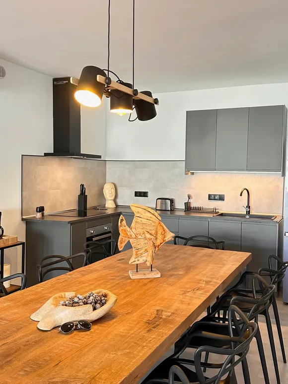 - Cocina completamente equipada con vitrocerámica, microondas y gran frigorÃfico-congelador
